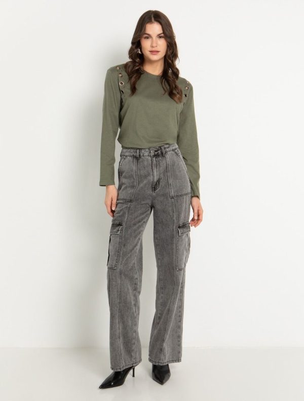 Toi&Moi Viscose σατινέ μπλούζα 30-5654-225-Olive/Λαδί