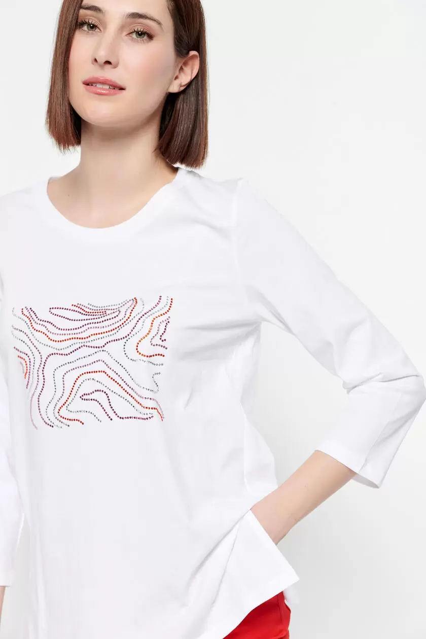 - Μπλούζα βαμβακερή από 100% βαμβάκι με 3/4 μανίκι, μικρό άνοιγμα στο πλάι και σχέδιο με στρας.