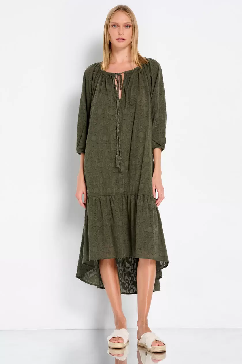 - Φόρεμα από 100% βαμβάκι και βολάν στο τελείωμα.