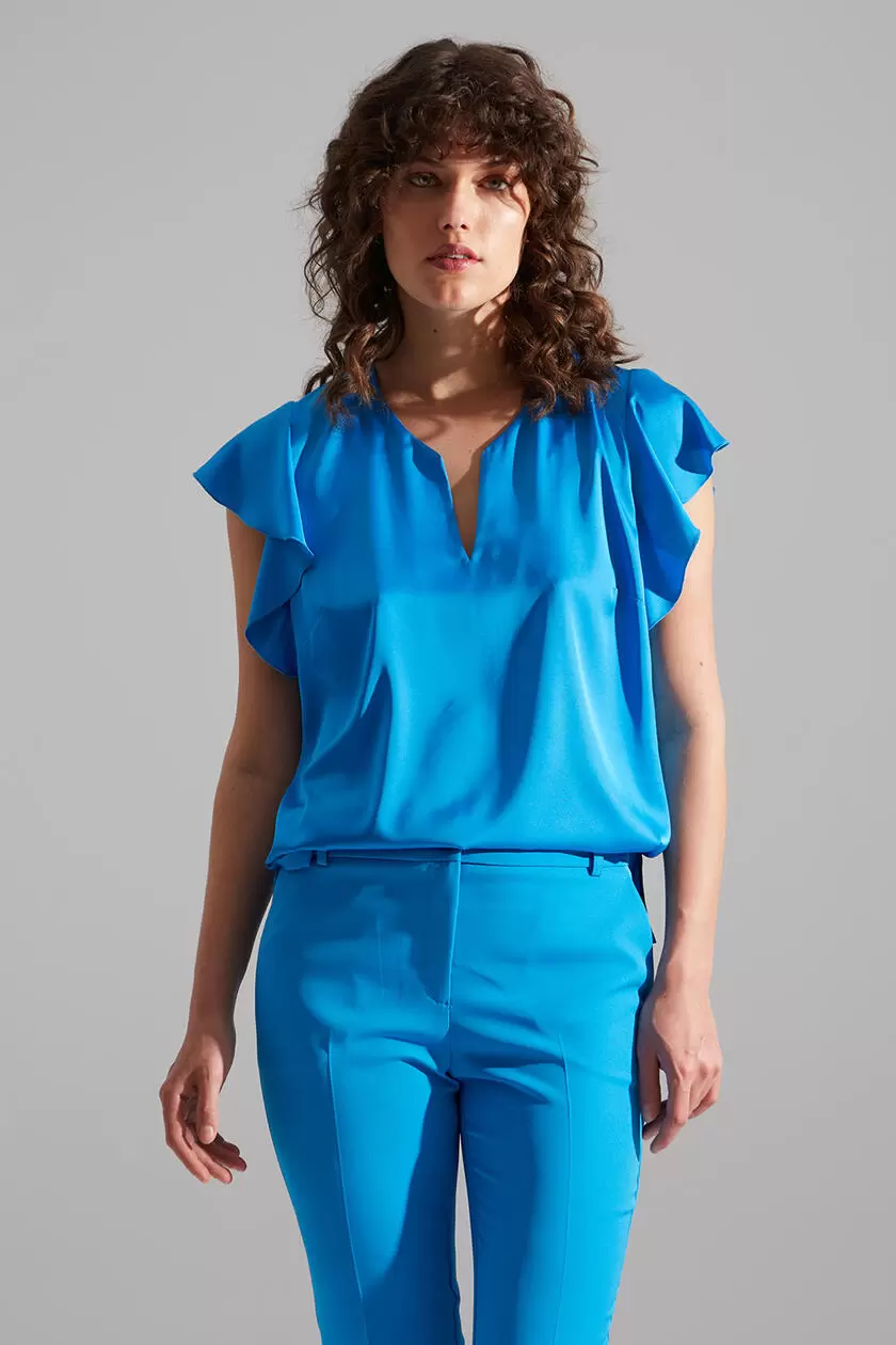 - Μπλούζα σατέν με βολάν στο μανίκι και και V μικρό ντεκολτέ.