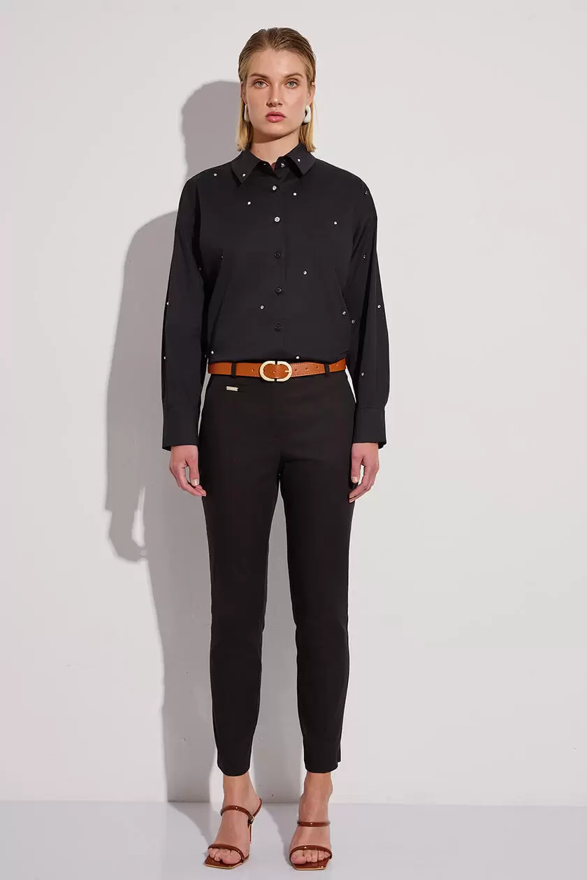 - Παντελόνι βαμβακερό office, κλείσιμο μπροστά με κουμπί και φερμουάρ και πλαϊνές τσέπες.