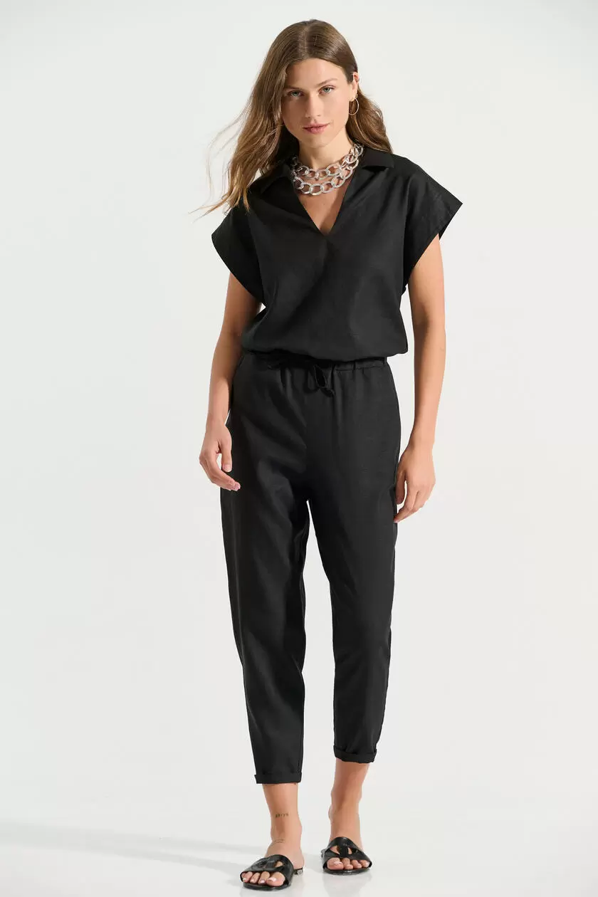 - Παντελόνι σε χαλαρή γραμμή με λάστιχο και κορδόνι στη μέση για άνετη εφαρμογή.