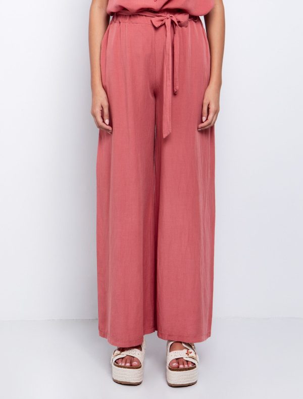 - Παντελόνι με πιέτα, που στενεύει στο κάτω μέρος, πλαϊνές τσέπες και κλείσιμο μπροστά με φερμουαρ και κόπιτσα.