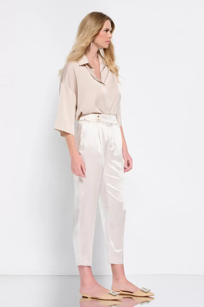 - Παντελόνι σατινέ αστραγάλου με κουμπιά κόσμημα.
