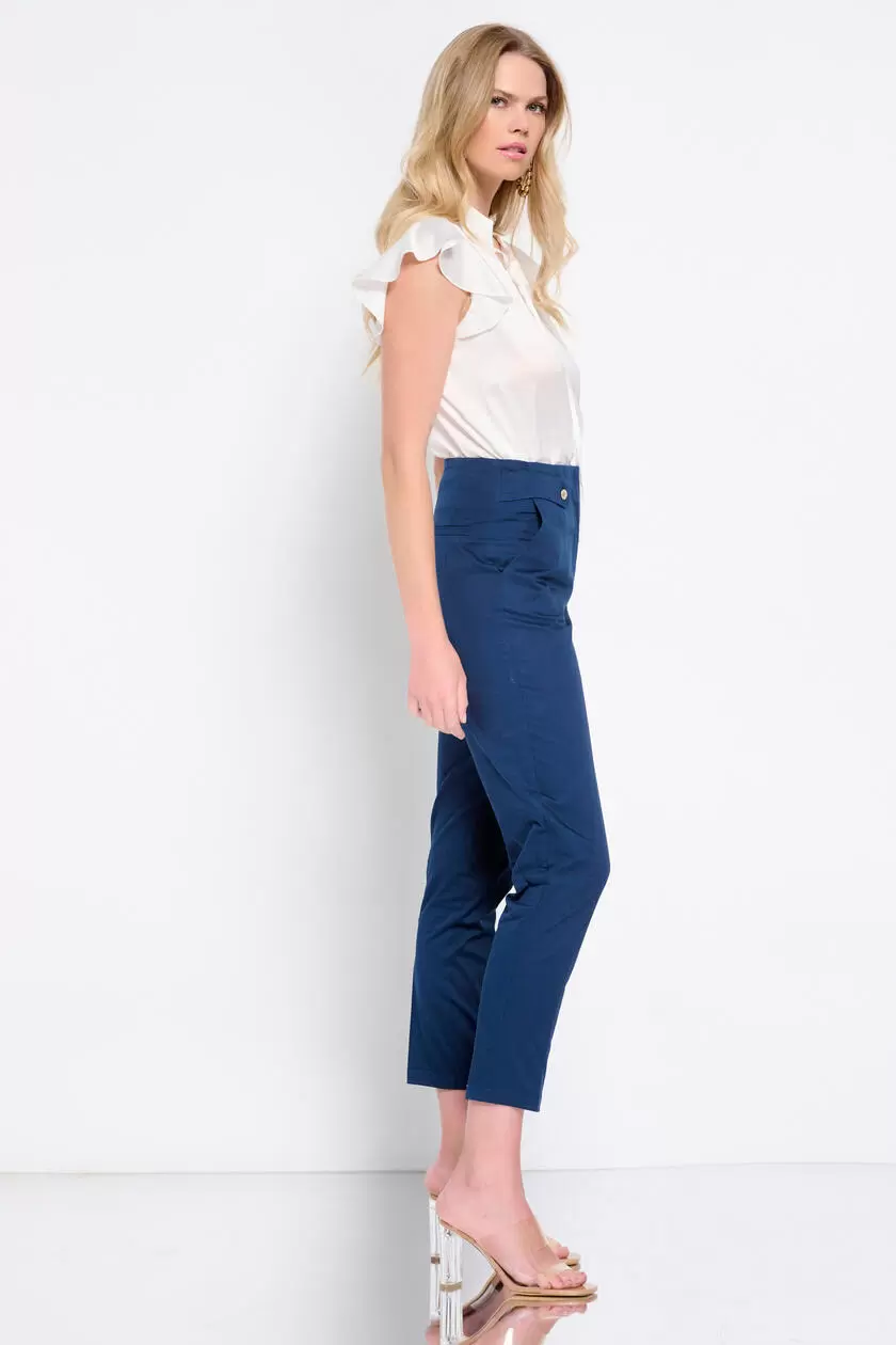 - Παντελόνι αστραγάλου, με διακοσμητικό σχέδιο και κουμπιά στο μπροστινό μέρος.