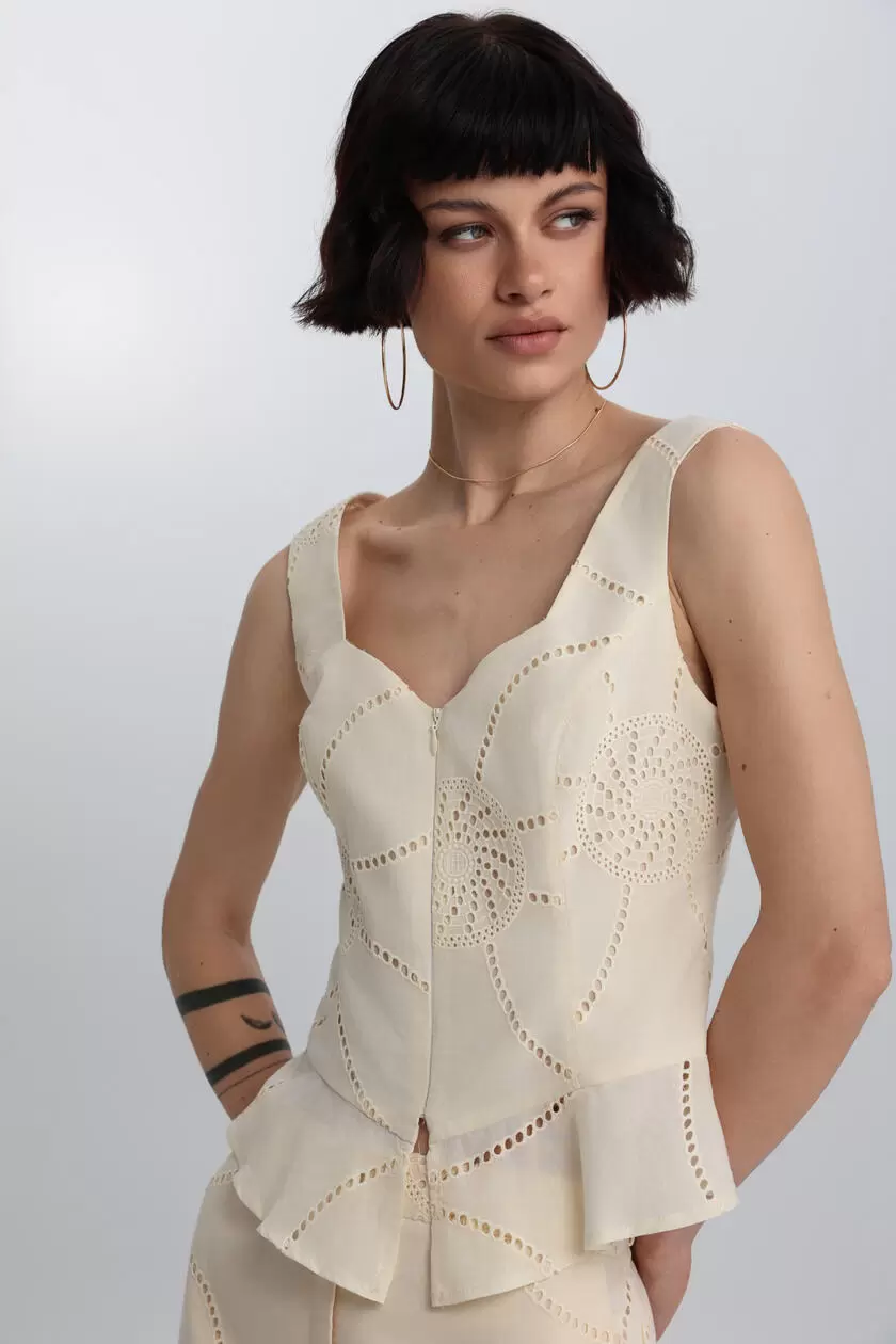 - Αυτή η μπλούζα από 100% βαμβάκι εντυπωσιάζει με το κεντημένο μοτίβο και τις δαντελένιες λεπτομέρειες.