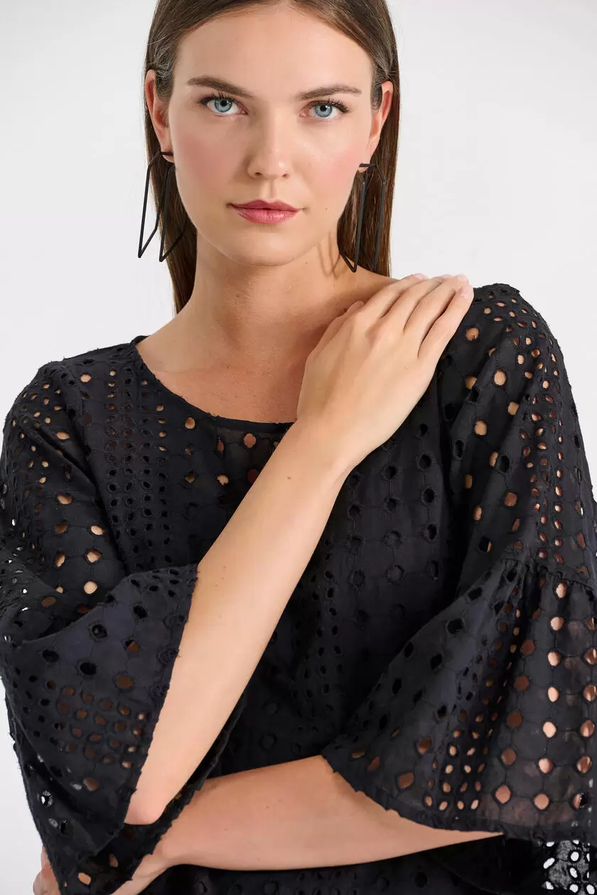 Bill Cost Βαμβακερό Φόρεμα κυπούρ με Μανίκι 3/4 10-350468-0-Black/Μαύρο