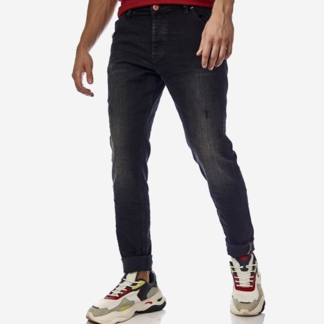 - Ανδρικό μοντέρνο jean παντελόνι σε μαύρο χρώμα, με υπέροχα ξεβάμματα μπροστά