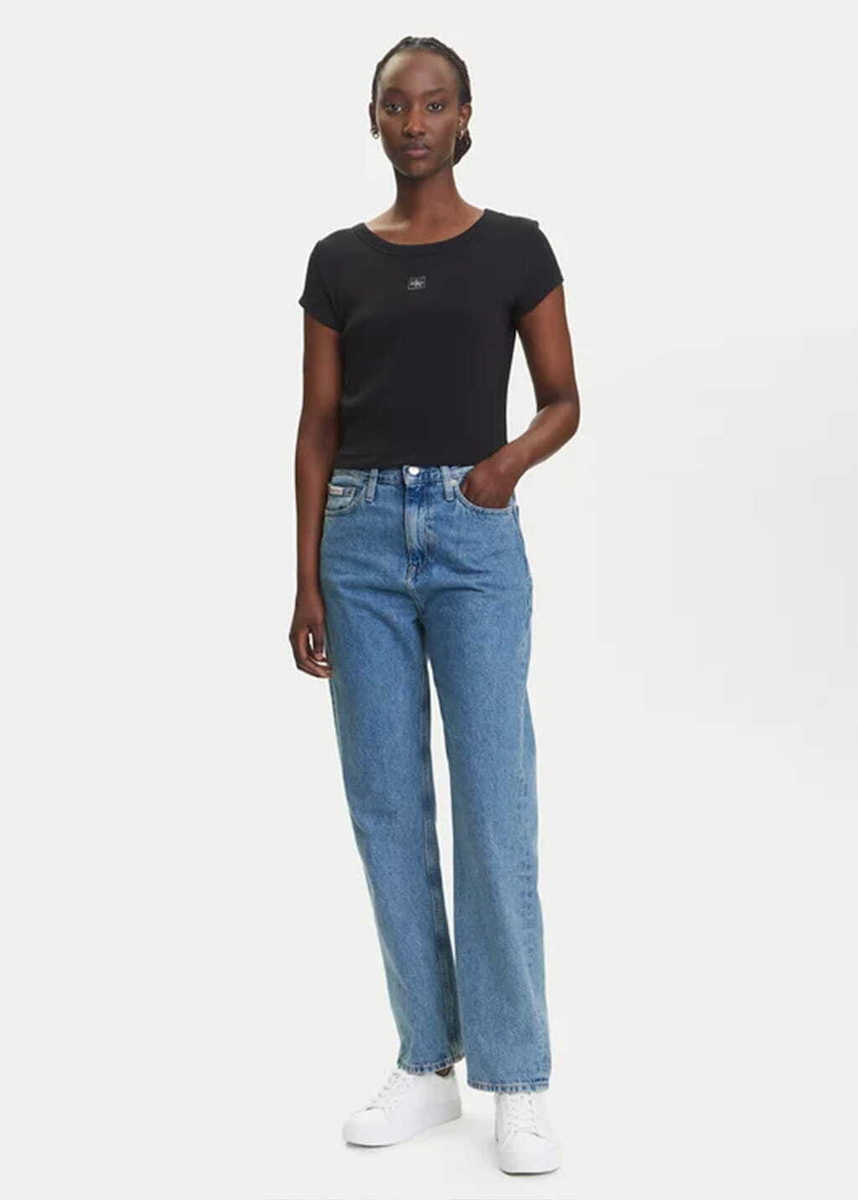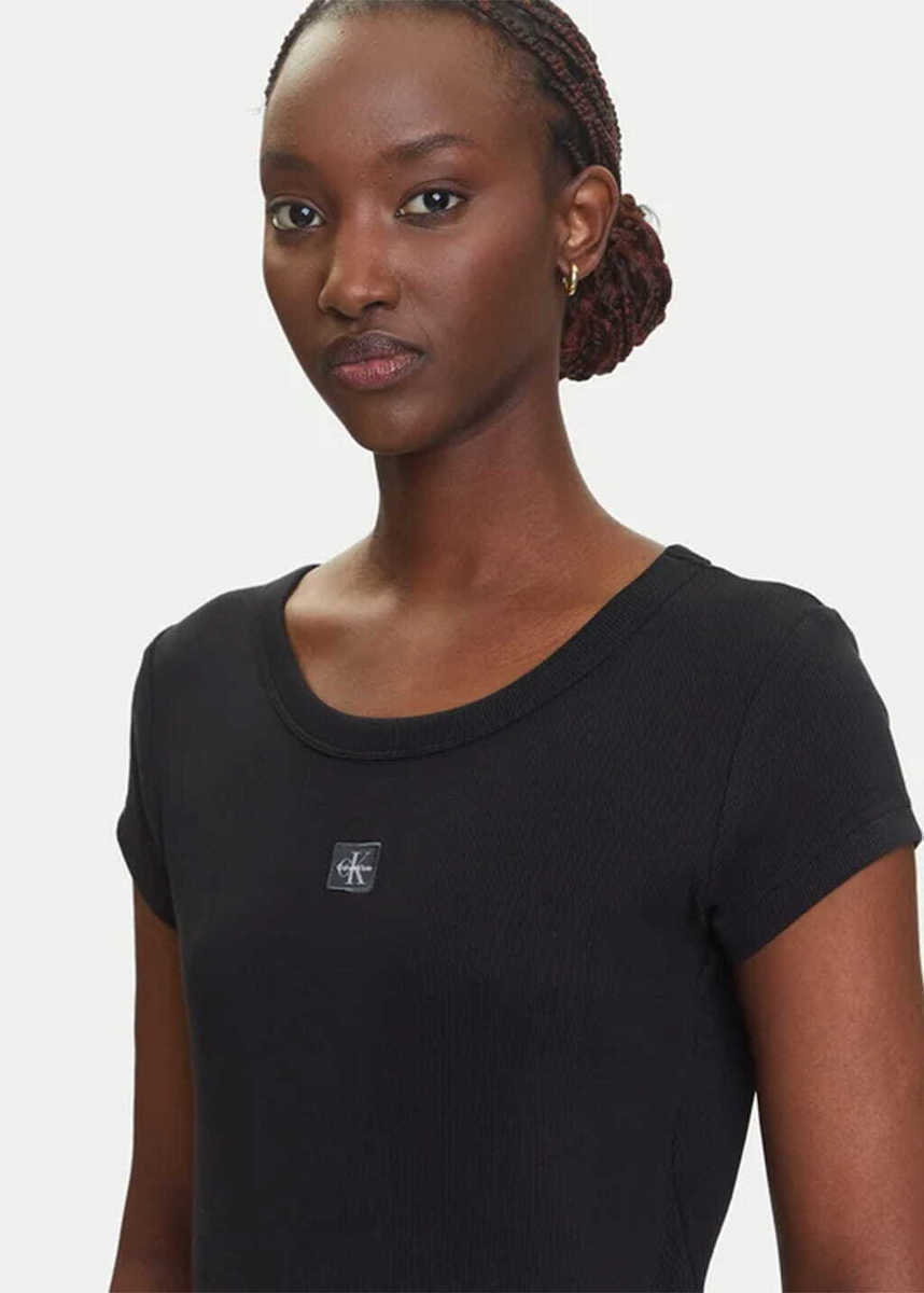 - Γυναικείο t-shirt, σε εφαρμοστή γραμμή, κοντομάνικο, με στρογγυλή λαιμόκοψη και rib ύφανση.