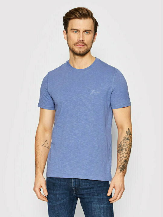 - Ανδρικό t-shirt της εταιρίας Guess σε μωβ χρώμα για casual εμφανίσεις.