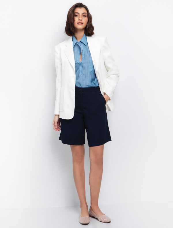 - Μπροστινό φερμουάρ και κούμπωμα με κουμπί.