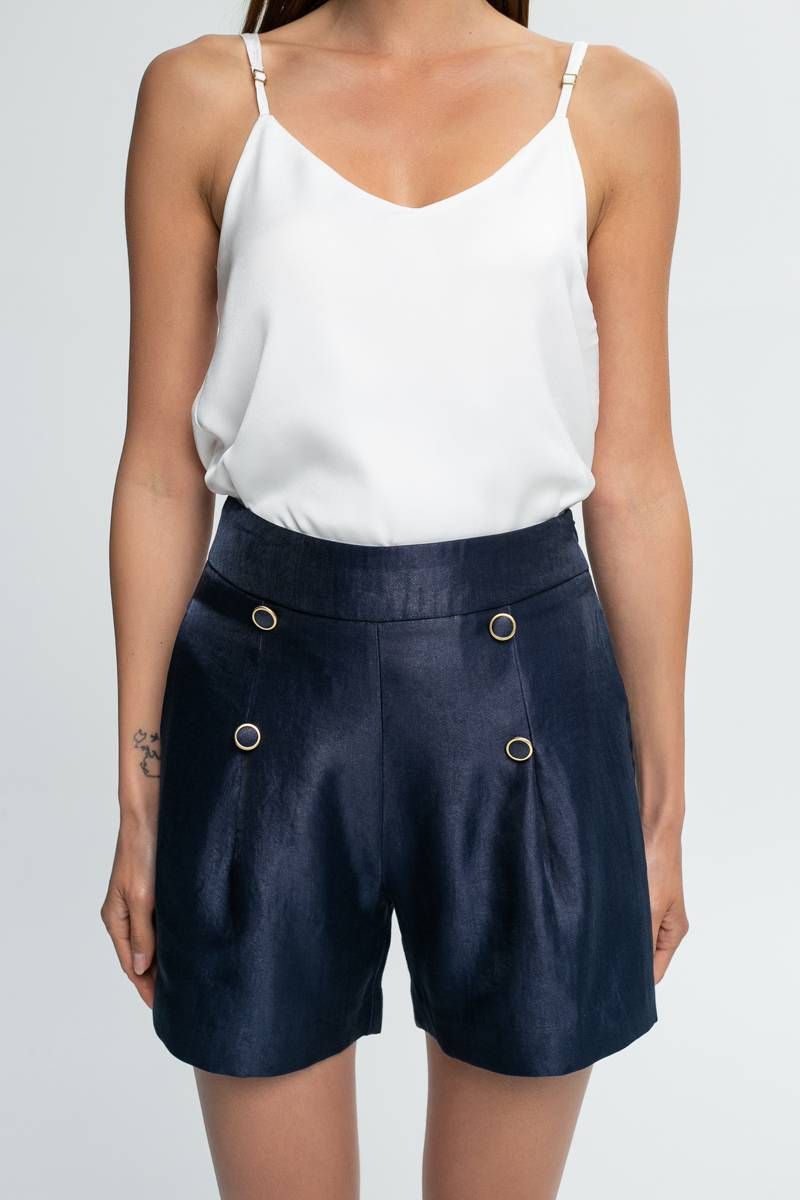- Ψηλόμεσο σορτς με γυαλιστερή υφή