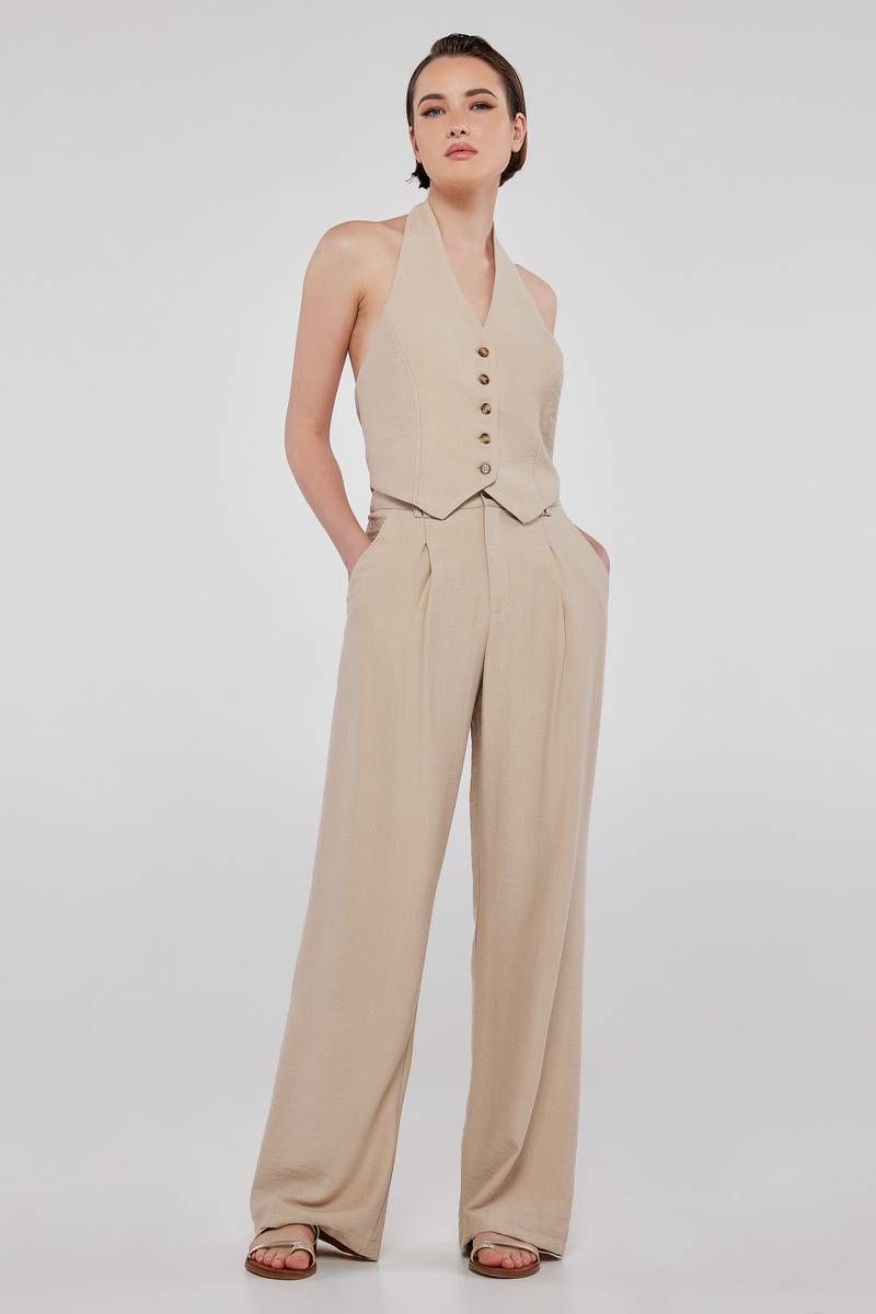 - Ψηλόμεση παντελόνα με πιέτα σε ίσια γραμμή.