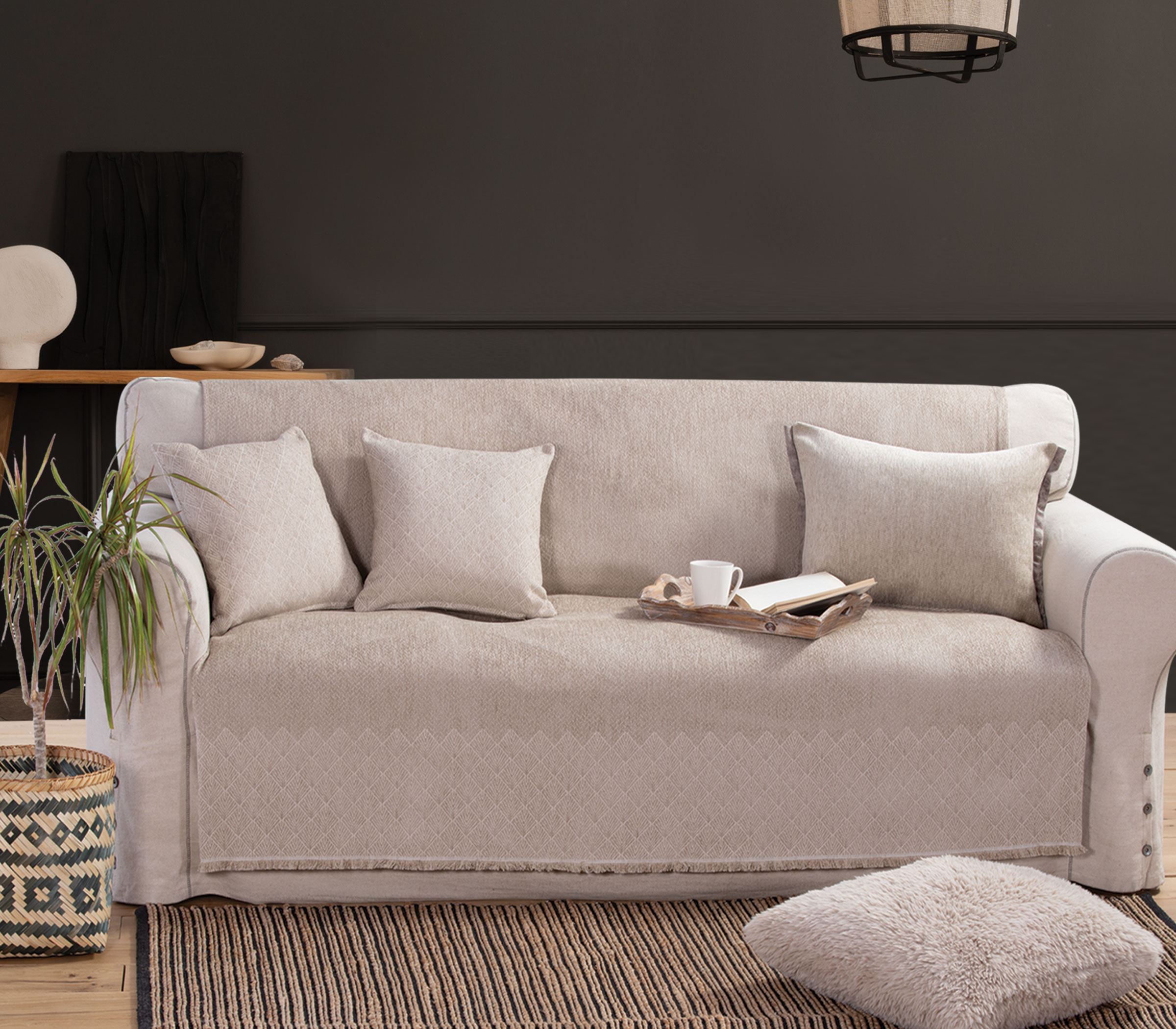 - Ριχτάρι τριθέσιου καναπέ διάστασης 170x300cm, με ύφασμα από 36% βαμβάκι – 42% ακρυλικό – 22% πολυεστέρας.