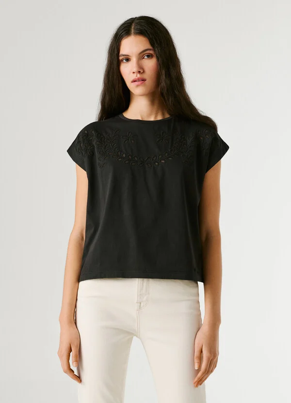 - Ελαφρύ βαμβακερό μπλουζάκι ζέρσεϊκοντά μανίκια.