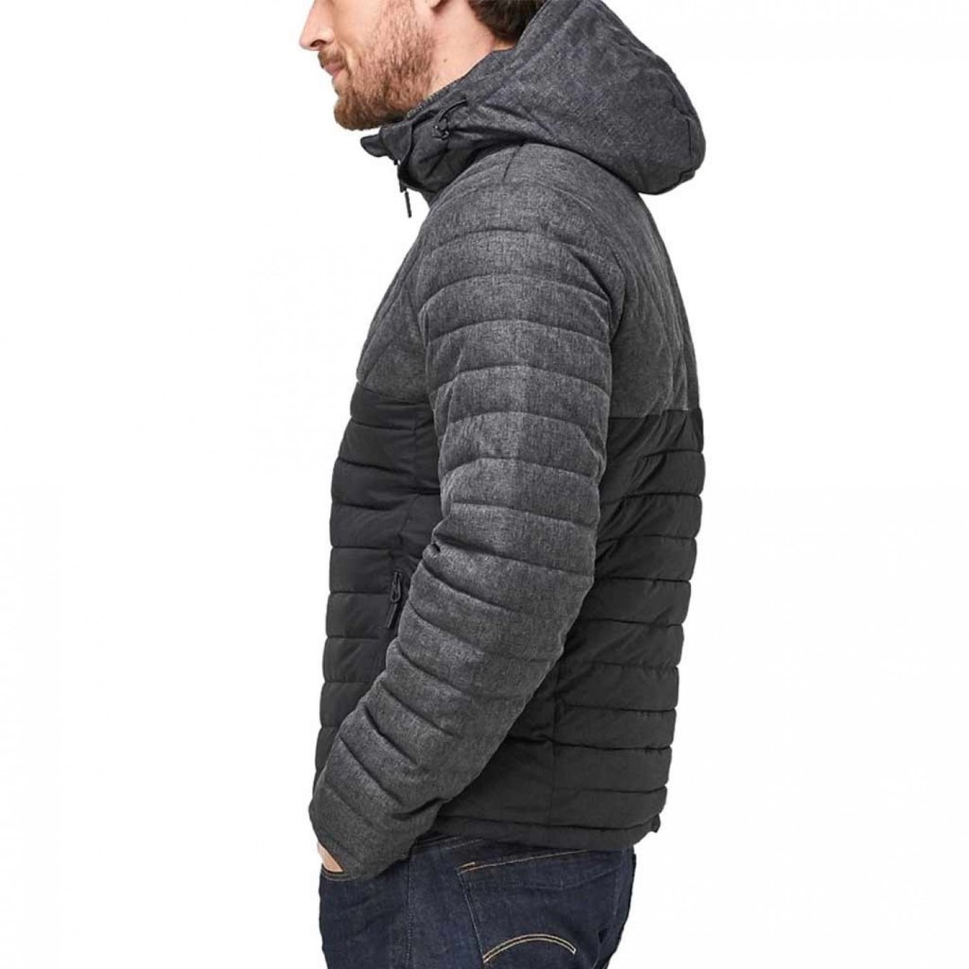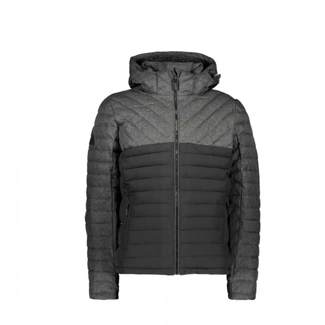 - Μπουφάν με κουκούλα και εναλλαγή υφάσματος σε αποχρώσεις γκρι και μαύρο