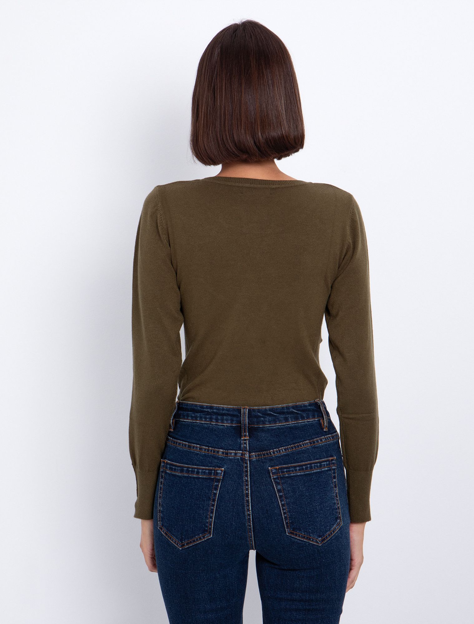 Toi&Moi Basic πλεκτή μπλούζα στρογγυλή λαιμόκοψη 70-4817-225-Olive/Λαδί