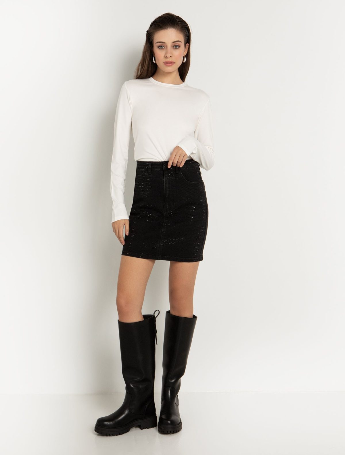 - Σχέδιο με στρογγυλή λαιμόκοψη & μακρύ μανίκι.