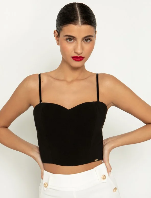 • Τοπ σε στυλ κορσέ με ντεκολτέ σε σχήμα καρδιάς & ακάλυπτους ώμους.