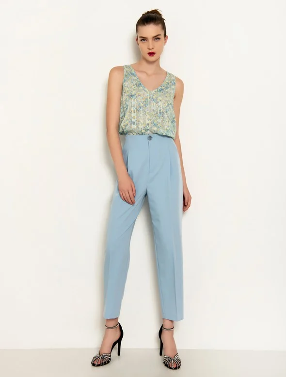 - Αμάνικο τοπ με V λαιμόκοψη & τύπωμα μικρά λουλούδια σε ανάγλυφη ύφανση.