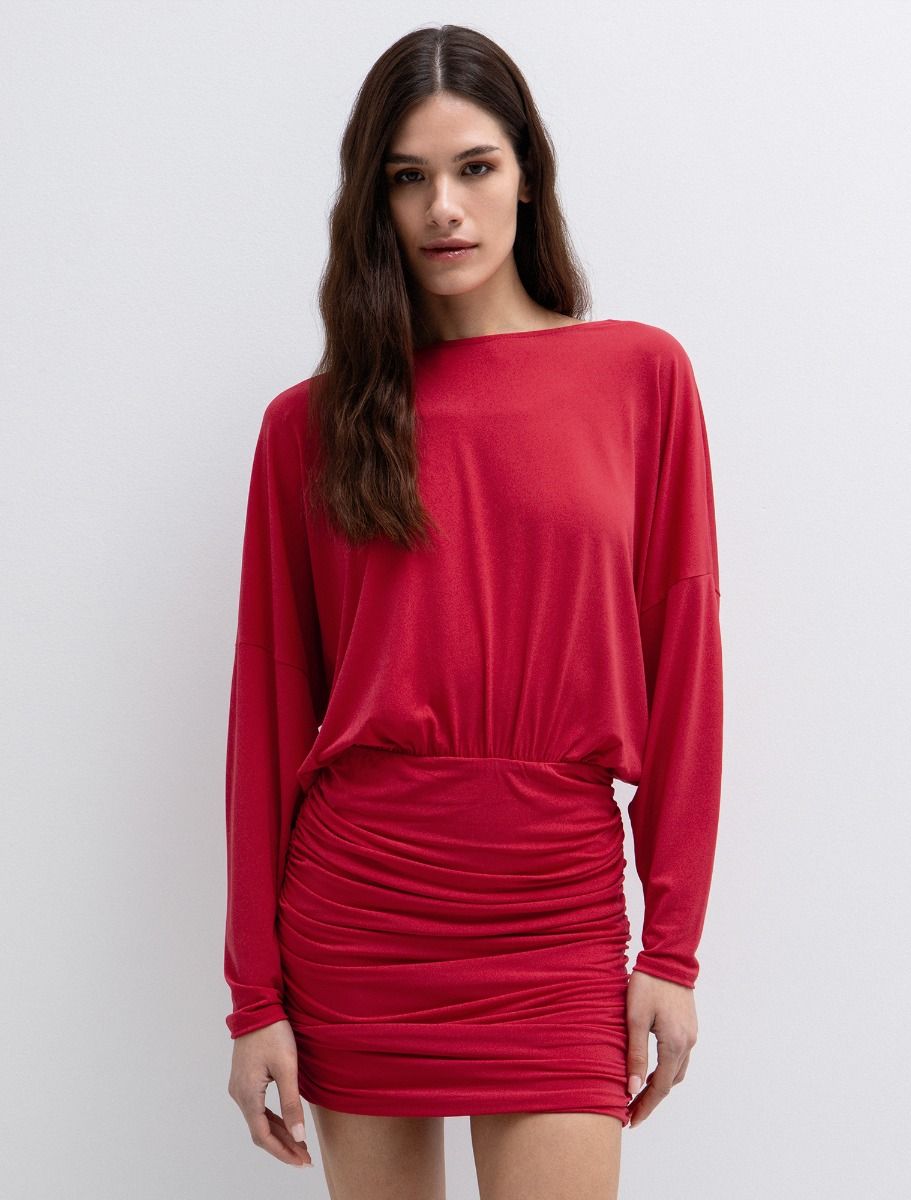 - Βαθιά ανοιχτή πλάτη σε σχήμα V.