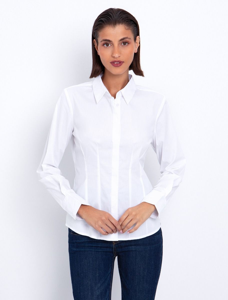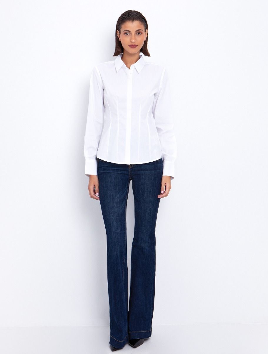 - Μεσάτο πουκάμισο με γιακά από μείγμα βαμβακιού.