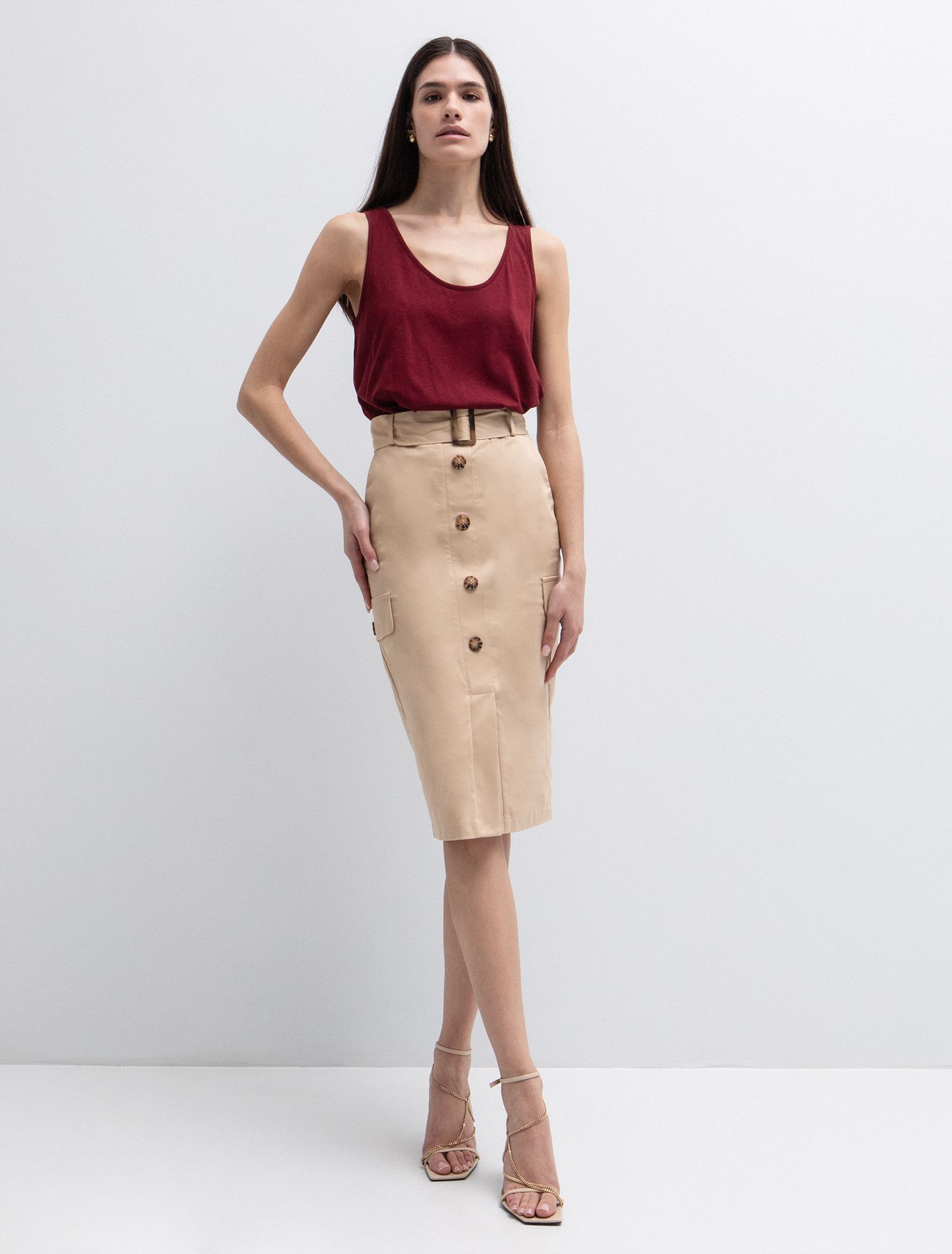 HomeΡούχαΦούστες Toi&Moi Pencil φούστα με ζώνη 10-4002-126-Beige/Μπέζ