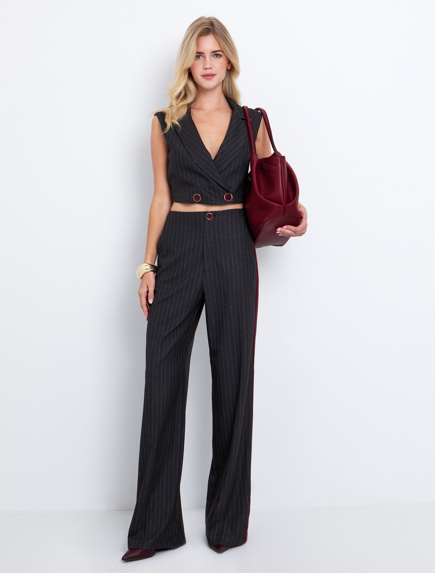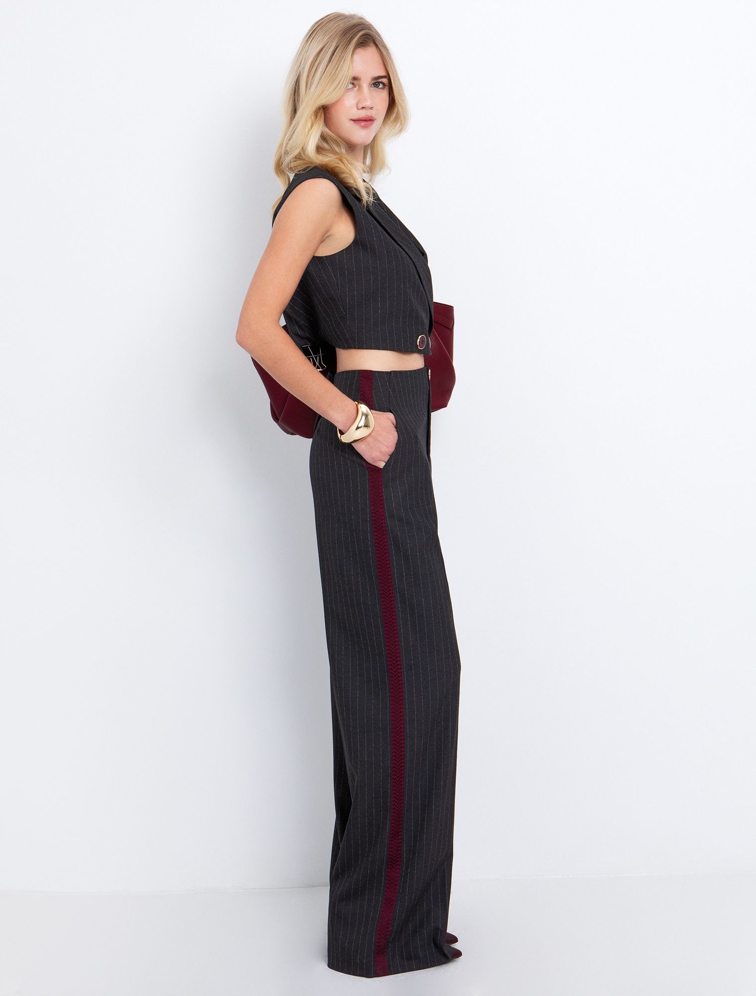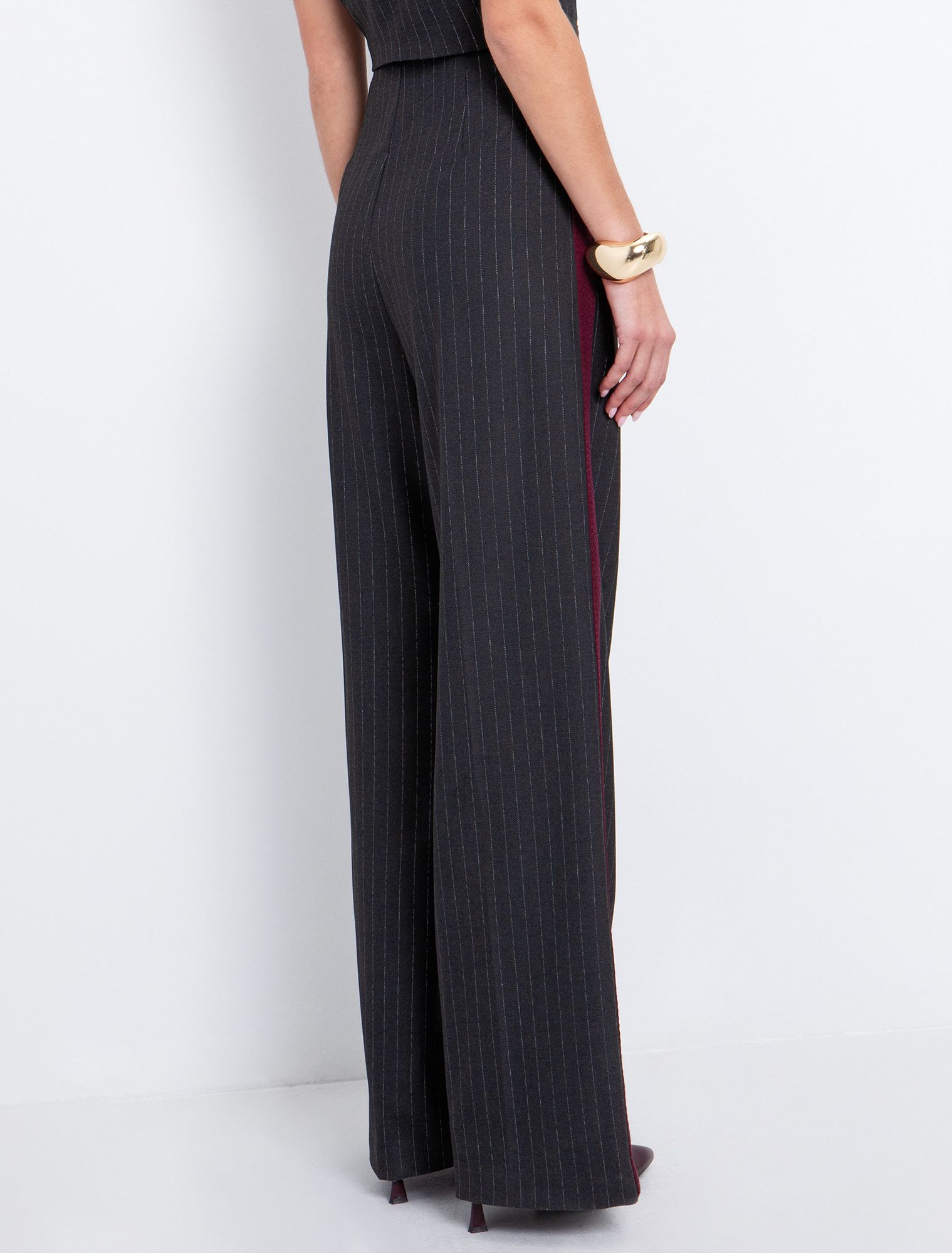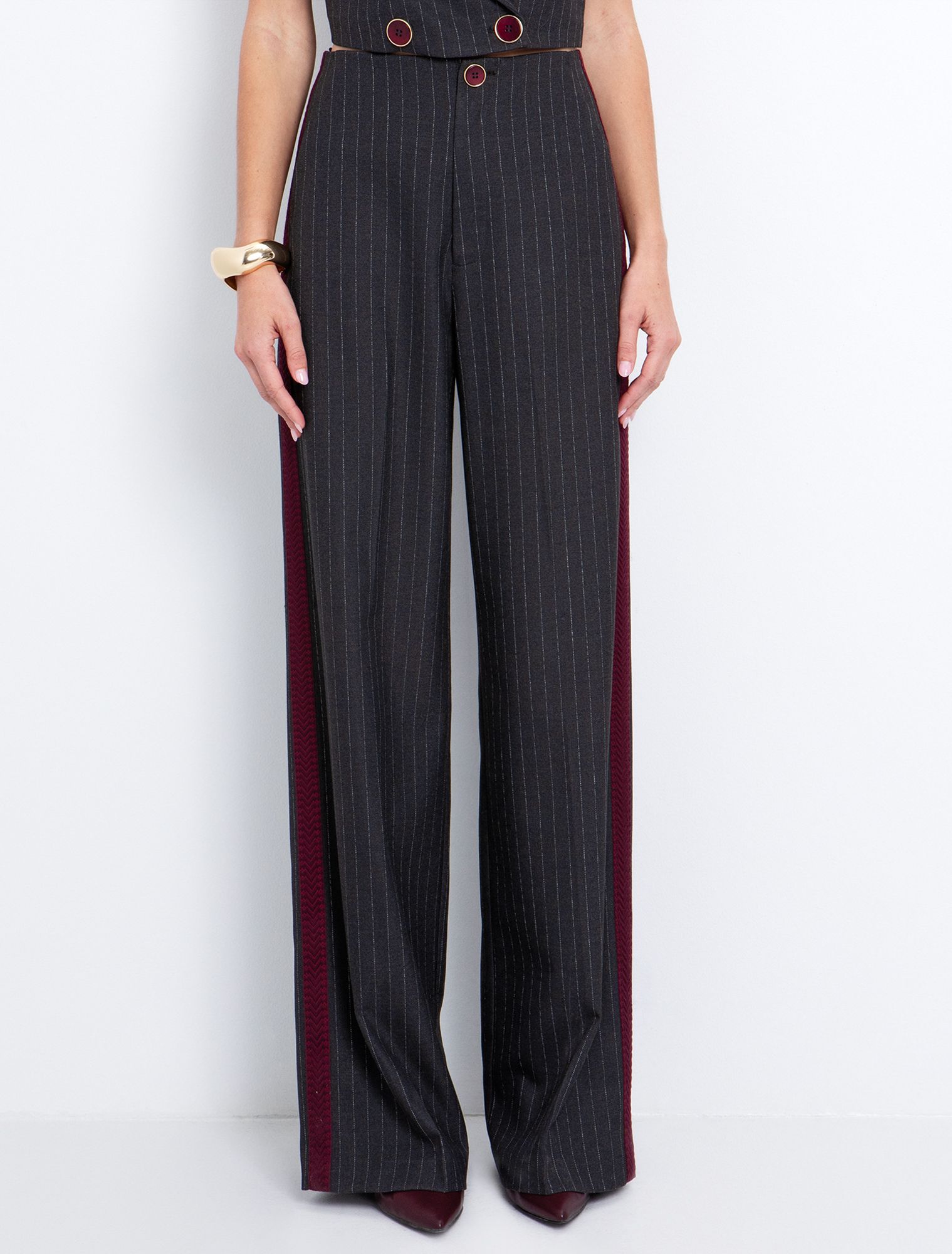 - Πλαινή φαρδιά μπορντώ ρίγα με σχέδιο.