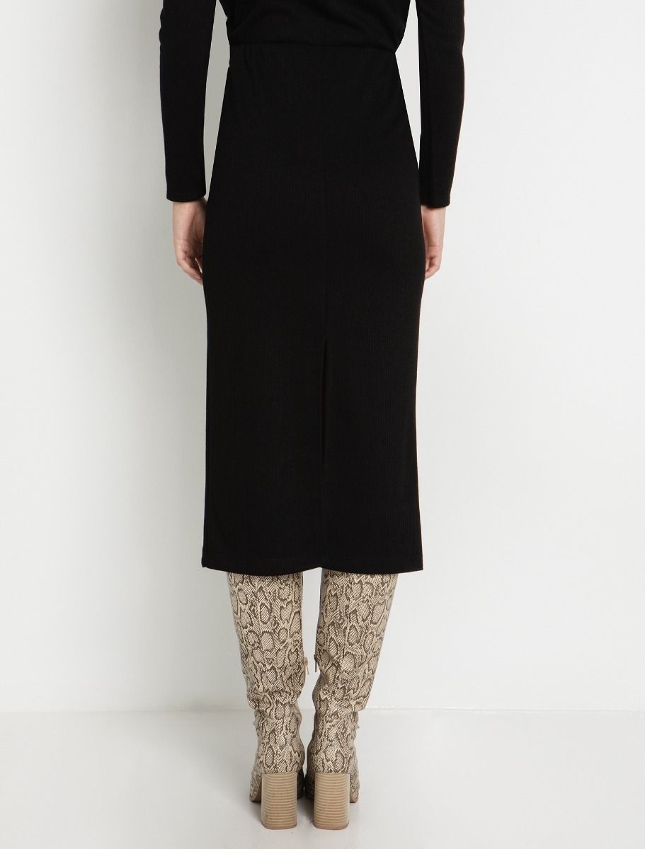 - Ψηλόμεση pencil φούστα με ανάγλυφη rib πλέξη & ελαστική μέση.