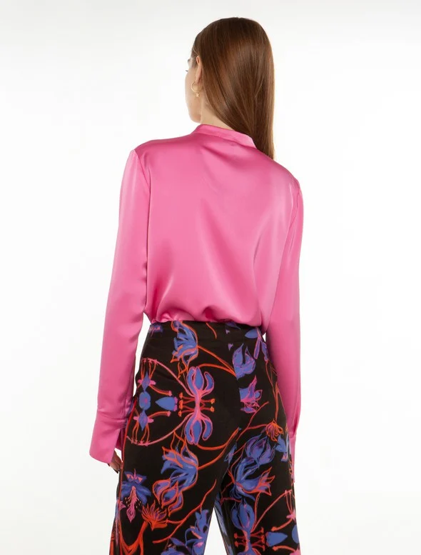 • Πουκάμισο σε σατινέ όψη με μαο γιακά.