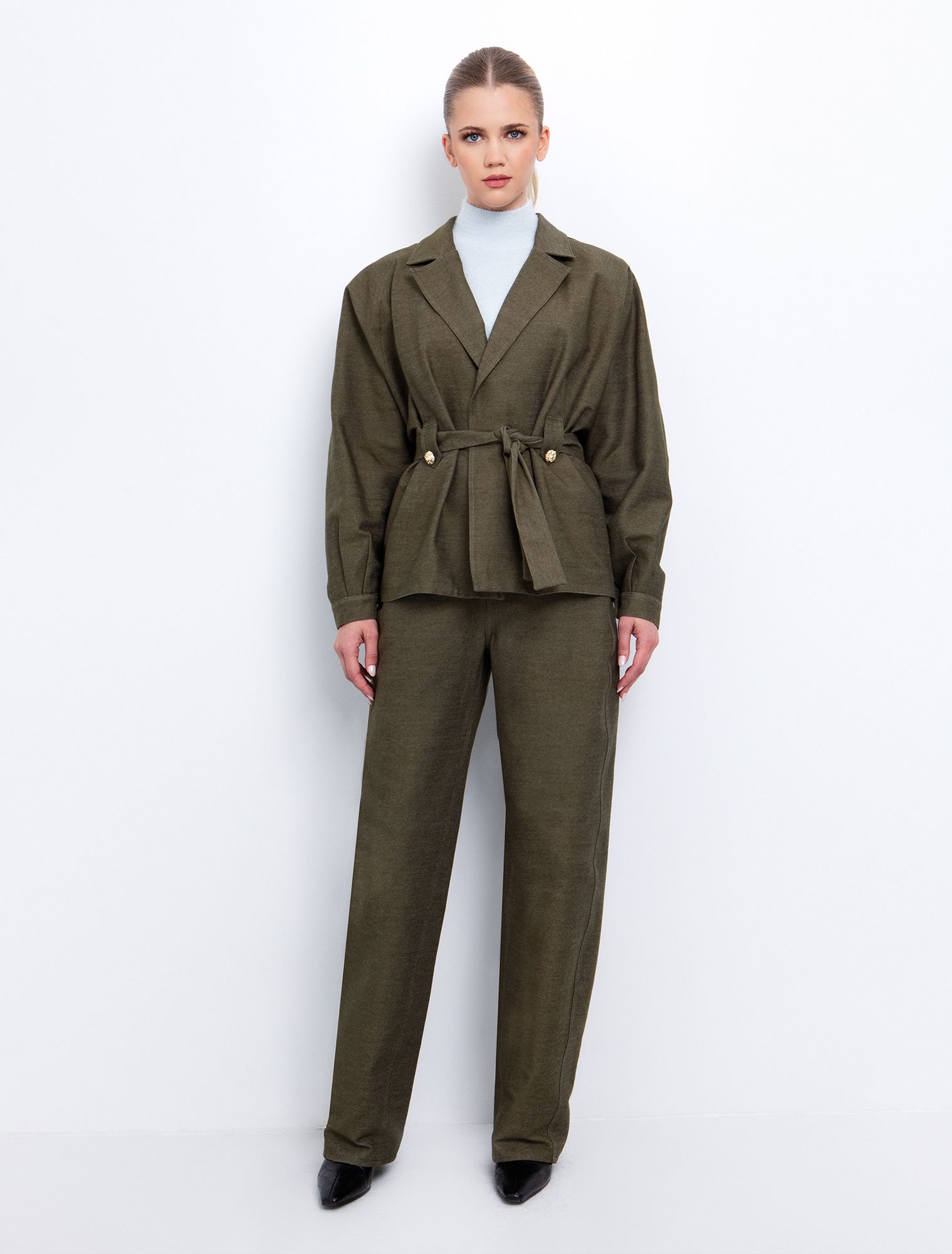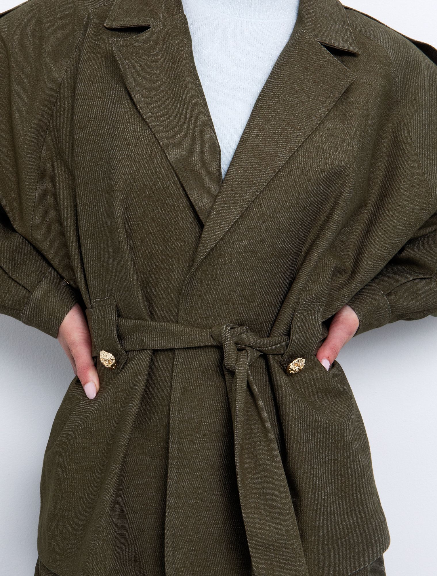 • Κλείσιμο με ασορτί ζώνη.