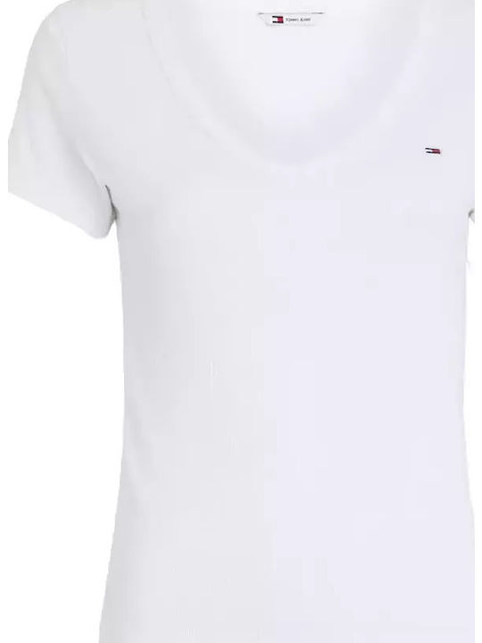 TOMMY JEANS Essential T-Shirt Σε Slim Γραμμή Με V-DW0DW17385-White/Άσπρο